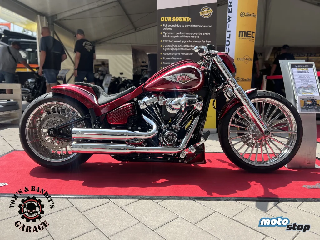Naš Harley privukel je više pažnje nego kaj smo očekivali i s tim smo zadovoljni. Kol’ko smo skužili, znatiželjne posjetioce fascinirala je neobično duboka nijansa crne boje našega motora i to nas je dosta iznenadilo. Prezentirali smo i LEGEND, zračni ovjes na našem Harleyu, a morali smo i upaliti i pokazati kak’ dela i kak’ se čuje naš KESSTECH auspuh.